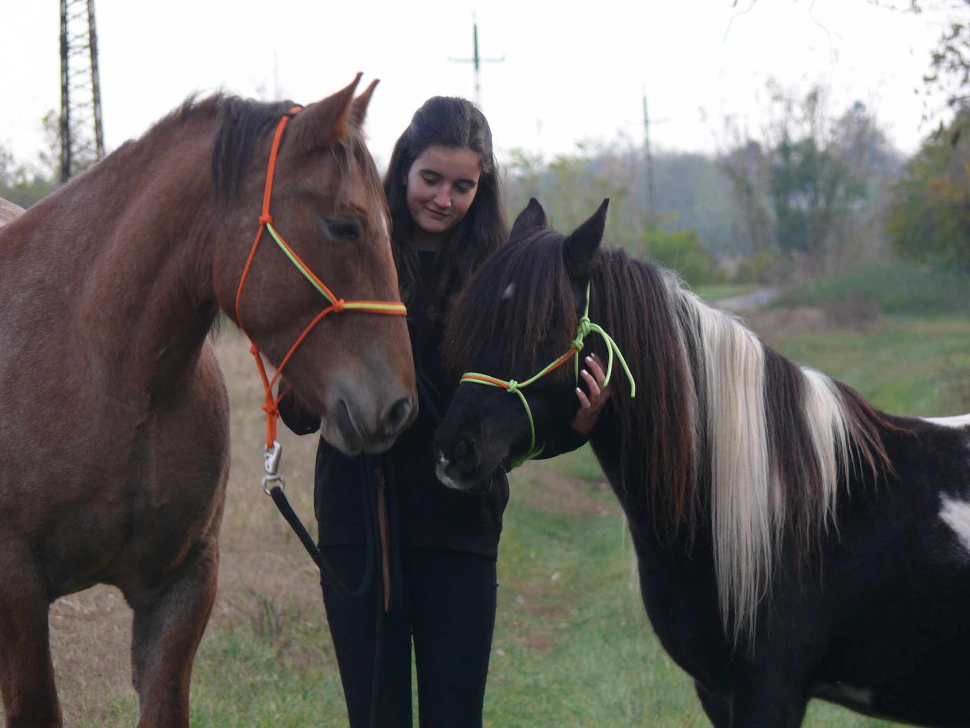Akkor kezdjük a bemutatkozást velem. Körülbelül 7 éves korom óta érdekelnek a lovak, és mivel a szüleim bármit képesek megtenni értem, el is kezdtem hamar lovagolni. Imádtam járni jó darabig, de aztán elegem lett abból, hogy a lovaglás több mint fele azzal ment el, hogy hajlításokat végeztem. És ami a legjobban zavart, sosem engedték, hogy én csutakoljam, nyergeljem, vezessem a kis pónit, akin kezdtem az egészet, és akin KELLETT lovagolnom -még akkor is, mikor már eléggé kinőttem szegényt-. Pedig nagyon édes kis egyéniség, de mivel nem engedtek át nagy lóra, róla meg szinte már le is ért a lábam, otthagytam a lovardát. Egy-két évem ezután nagyrészt lovak nélkül telt, bár, ha mentünk valahova és patásokat láttunk, annak mindig borzasztóan örültem. Aztán hallotunk itt helyben egy másik lovardáról, ahol megint belekezdtem álmaim sportjába. Bő egy évig jártam oda rendszeresen, de egy idő után azt vettem észre magamon, hogy nem várom. Hogy miért? Hát, kezdhetném azzal, hogy a körbe-körbe lovaglás nem annyira az én műfajom. A második, hogy mindig arra vágytam, hogy kivihessem legelni a lovat, vagy legalább futószárazhassam én. Most így utólag visszagondolva nem emlékszem arra, hogy a lónak, akin lovagoltam, milyen jegyei voltak a fején, vagy úgy egyáltalán bármire a kinézetéből. Az igazat megvallva, ami megmaradt, hogy magas és sötétpej. Semmit nem tudtam a testbeszédükről, fogalmam se volt arról, mi az a sunyítás -pedig azt azért hasznos tudni, na. Abbahagytam. Megint.